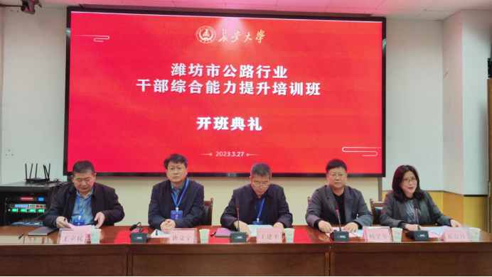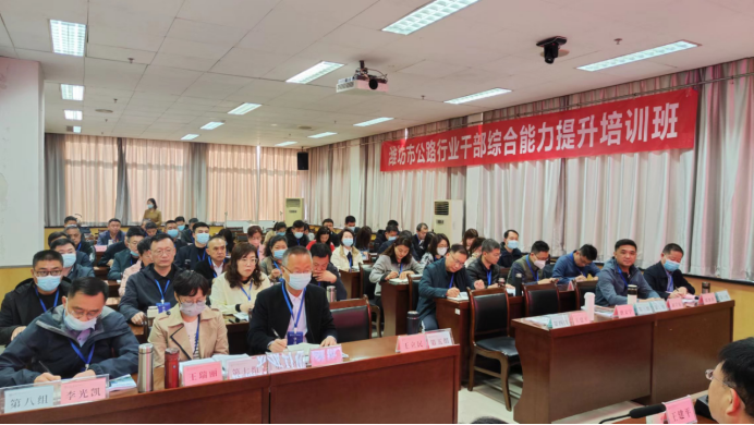 3月27日上午,我校承办的“潍坊市公路行业干部综合能力提升培训班”顺利开班。来自潍坊市公路行业的52名学员参加了本次培训。潍坊市公路事业发展中心纪委书记王建平、副主任唐文宁、副县级干部王立民、万象城allwincity官网副院长杨学军出席开班仪式,仪式由万象城allwincity官网办公室主任崔合月主持。