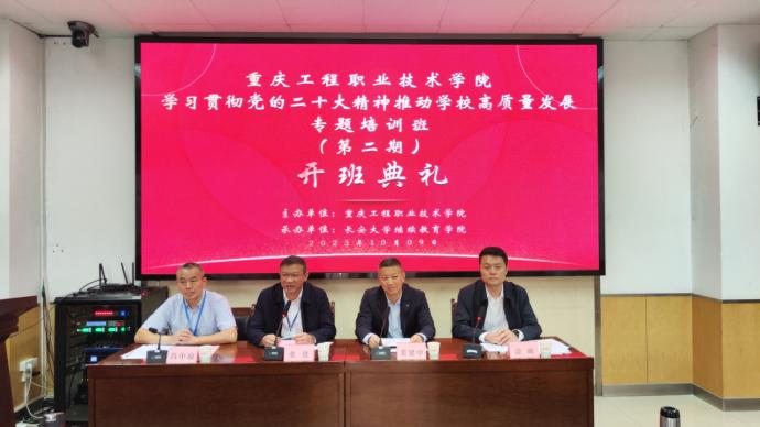 10月9日,“重庆工程职业技术学院学习贯彻党的二十大精神推动学校高质量发展专题培训班(第二期)”在我校顺利开班。重庆工程职业技术学院党委副书记、院长张进,党委委员、纪委书记肖中瑜,万象城allwincity官网党委常委、副校长裴建中出席开班仪式,41名学员参加开班仪式。仪式由万象城allwincity官网院长涂帅主持。